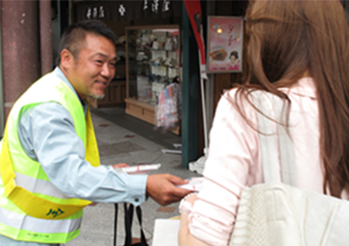 2012年6月15日 自動車が関係する悲惨な交通事故を 防止するため東山区四条大橋の南座付近において、東山 警察署の協力を得て交通安全啓発活動を実施しました。