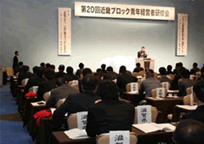 2009年3月7日第20回近畿ブロック青年経営者研修会を滋賀県大津市の琵琶湖ホテルで開催。講演会では(有)クロフネカンパニー代表取締役社長の中村文昭氏を招いて行われた。