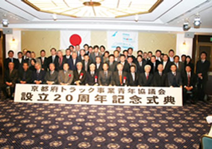 2008年2月3日『設立20周年記念式典&祝賀会』が京都ホテルオークラで開催。柳田京都運輸支局長、竹之内京ト協会長をはじめ、全国から青年協の仲間が多数祝福に駆けつけていただきました。
