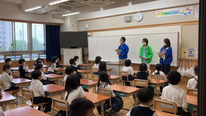 令和3年4月21日(木)京都市立向島秀蓮小中学校にて交通安全授業を開催致しました。当日は子供たちに「交差点でのオーバーハングについて」「トラックの死角について」「トラックふれあい体験」を実施し、横断歩道での立ち位置や、大きなトラックには近づくと危ないということについて学びました。またふれあい体験や乗車体験では子供たちに喜んでもらい、意義のある出前授業になりました。青年部としては初の試み
