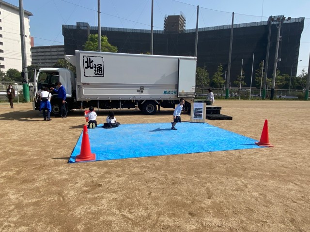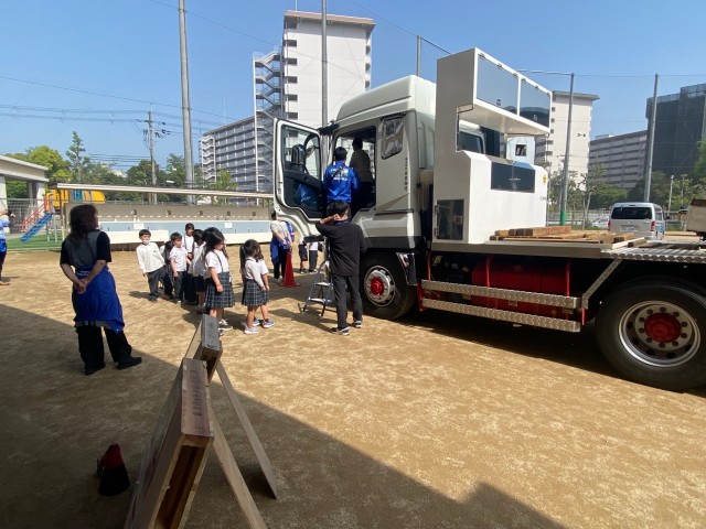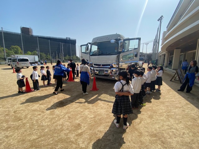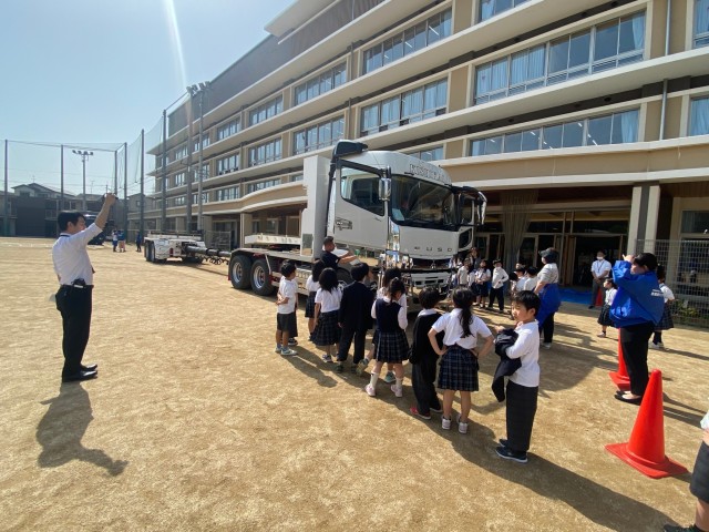 4月20日に向島秀蓮小中学校の2年生を対象に、交通安全出前授業を開催しました。元気いっぱいの子供たちに、大きいトラックの魅力や、道路での危険について学んでもらいました。我々青年部といたしましては2回目ということもあり、段取りよくスムーズに開催することができました。